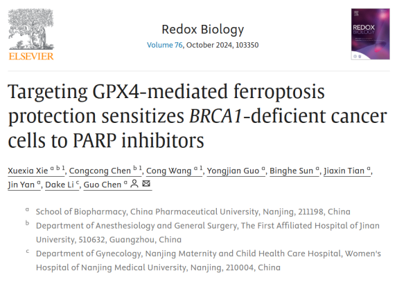 51黑料 陈果教授课题组在在生命科学学科顶尖期刊Redox Biology杂志(IF:11.8)上发表了题为Targeting GPX4-mediated ferroptosis protection sensitizes BRCA1-deficient cancer cells to PARP inhibitors的文章。该研究发现BRCA1通过泛素化GPX4并促进其降解,从而促进铁死亡易感性,并证明了GPX4作为BRCA1突变癌症治疗靶点的潜力。同时,发现PARPi能够诱导铁死亡,BRCA1突变由于其高表达GPX4导致其对铁死亡耐受,靶向GPX4能够在BRCA1突变卵巢癌中与PARP抑制剂产生协同的抗肿瘤作用。
